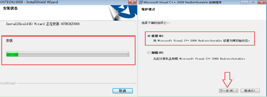 10、 此時正在安裝軟件,選擇----修復(fù),點擊----下一步