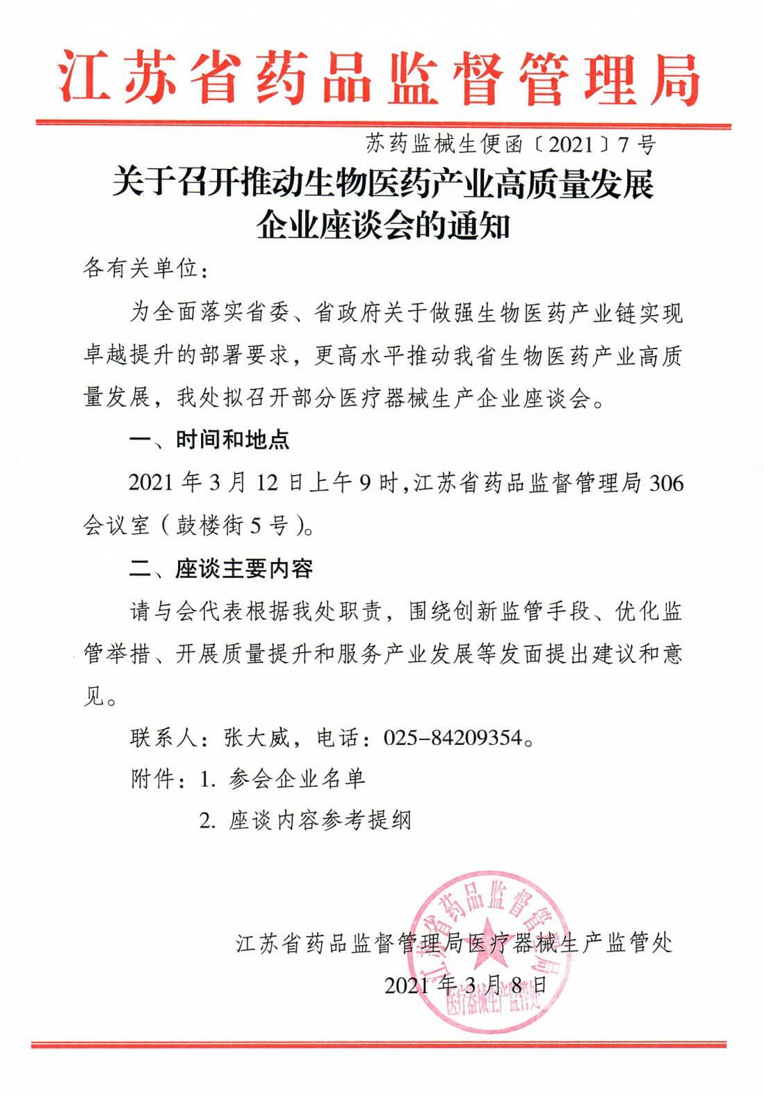 附件:關(guān)于召開推動生物醫(yī)藥產(chǎn)業(yè)高質(zhì)量發(fā)展企業(yè)座談會的通知