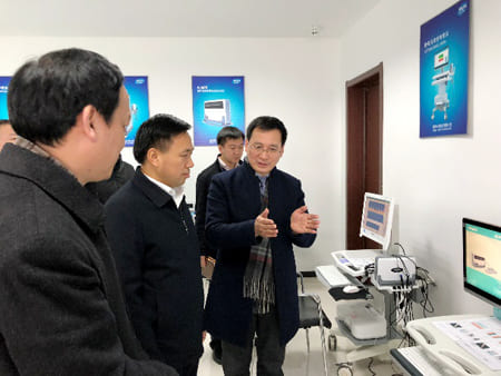 在產(chǎn)品展示區(qū),公司領導向邢書記介紹了多款自主研發(fā)的產(chǎn)品,當了解到公司的跟骨超聲骨密度儀產(chǎn)銷量為,他十分高興。公司領導匯報了自主研發(fā)的軟件產(chǎn)品的推廣和銷售情況,邢書記鼓勵企業(yè)要積極創(chuàng)新,要擁有自己的核心技術。邢書記參觀了公司電子商務區(qū),了解工作流程,產(chǎn)品價格,目前的銷售規(guī)模,他指示要根據(jù)醫(yī)療器械行業(yè)特點開展電子商務工作。