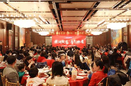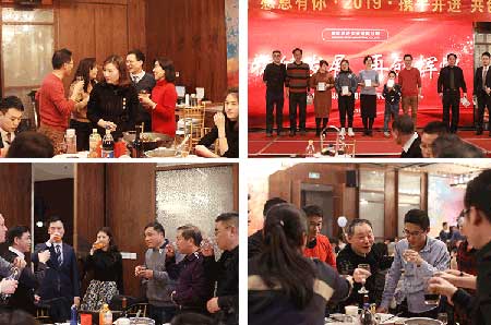 席間,領(lǐng)導(dǎo)、員工、家屬、嘉賓之間相互敬酒,互致新春問候和祝福,相互拜年,親切和睦,整個(gè)會場洋溢著熱烈歡快的氣氛。