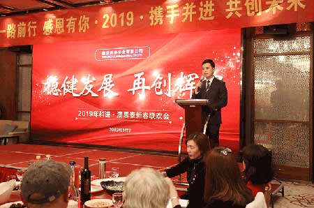 然后澳思泰總經(jīng)理俞政濤發(fā)表新年致辭,他說,2018年公司取得了驕人的業(yè)績,總銷售收入和利稅增長超過30%,共取得19項(xiàng)知識產(chǎn)權(quán),企業(yè)管理水平進(jìn)一步提升,他代表公司感謝全體員工、家屬和各界朋友!2019年公司要加大技術(shù)創(chuàng)新力度,以滿足用戶需求為目標(biāo),加強(qiáng)內(nèi)部管理,“穩(wěn)健發(fā)展,再創(chuàng)輝煌”。隨后他宣布:聯(lián)歡晚會正式開始!