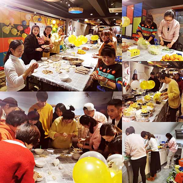 今天,小伙伴們一起做好吃的,有餃子,有火鍋,還有硬菜……這個過程中,涌現(xiàn)出了好多能手,黃海鳳的紅燒雞塊…王丹丹的酸菜魚…王玲和任艷柳包餃子,又快又好看……還有我們其他小伙伴,洗菜、切菜、擺盤…動作麻利,相互配合著,真是準(zhǔn)備得又快又好。