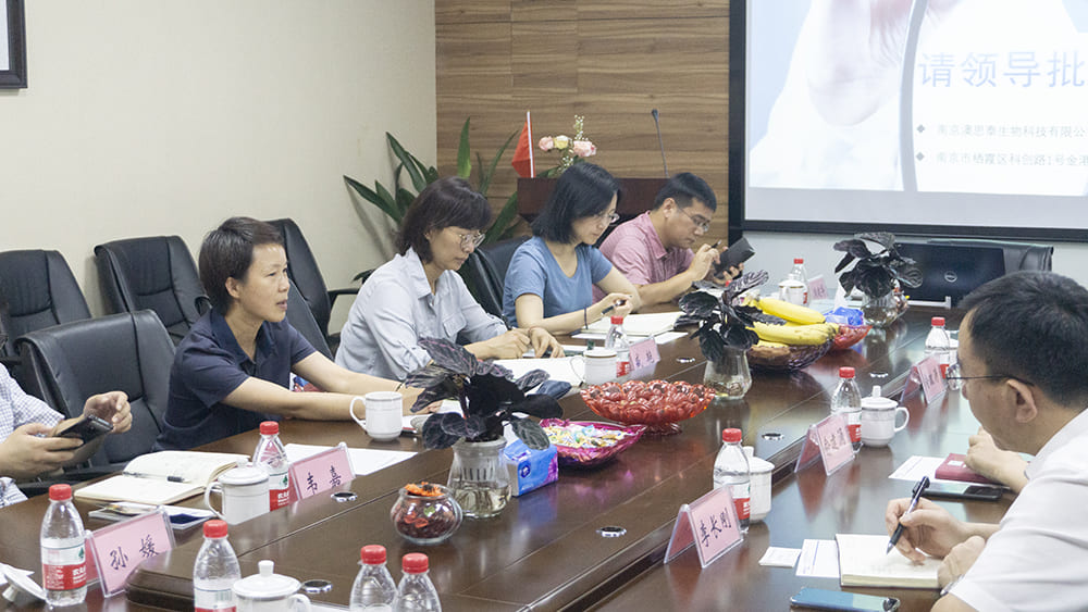 8月19日,南京市棲霞區(qū)人民政府副區(qū)長(zhǎng)盧靜、棲霞區(qū)科技局局長(zhǎng)盛艷、副局長(zhǎng)韋嘉一行到南京澳思泰生物科技有限公司走訪調(diào)研,棲霞高新區(qū)管委會(huì)企服部施燕妮、孫媛等領(lǐng)導(dǎo)陪同走訪。
