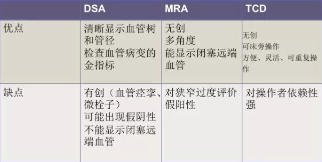 TCD、MRA 和DSA 三種檢查方法的優(yōu)缺點比較
